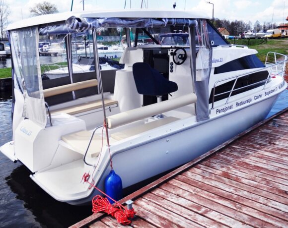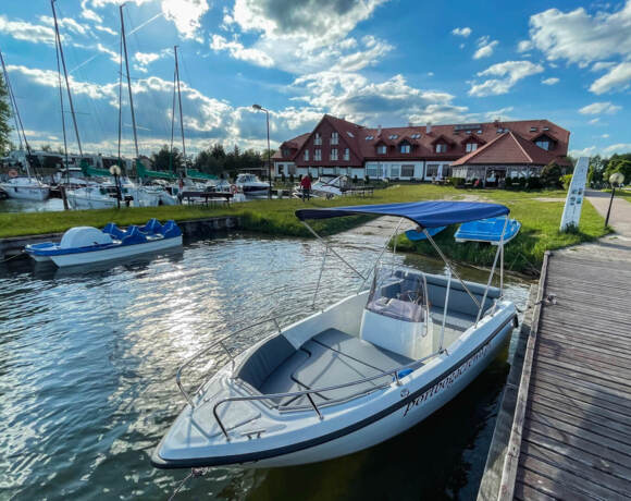 Do dyspozycji Gości oddajemy żaglówkę orazi 3 różnorodne łodzie motorowe, do sterowania których nie jest wymagane posiadanie uprawnień. Gościom, którzy posiadają patent motorowodny wypożyczamy skuter wodny. Sprzęt wodny posiada ubezpieczenia AC/OC