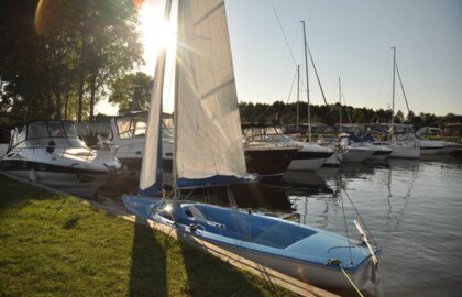 Dajemy możliwość wyjścia na wodę również tym, którzy chcą spróbować albo popłynąć spontanicznie — skorzystać z okoliczności, pogody i chwili, która akurat się pojawiła. Bez wcześniejszych planów i bez przygotowań. Na miejscu udostępniamy żaglówkę oraz kilka łodzi motorowych, do których prowadzenia nie są wymagane uprawnienia. To propozycja dla tych, którzy chcą zobaczyć jezioro z innej perspektywy i poczuć mazurski rytm w najprostszej formie. Dla osób posiadających patent motorowodny dostępny jest również skuter wodny. Cały sprzęt jest ubezpieczony, a wszystko odbywa się na znanym nam akwenie, w spokojnym tempie i z myślą o komforcie Gości.